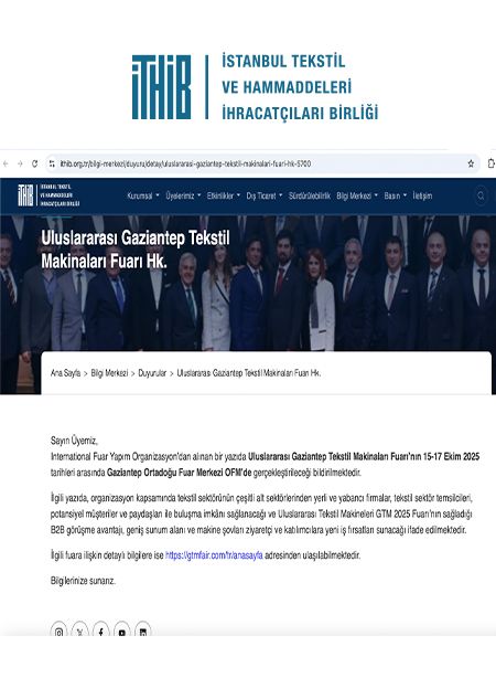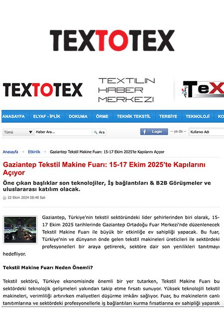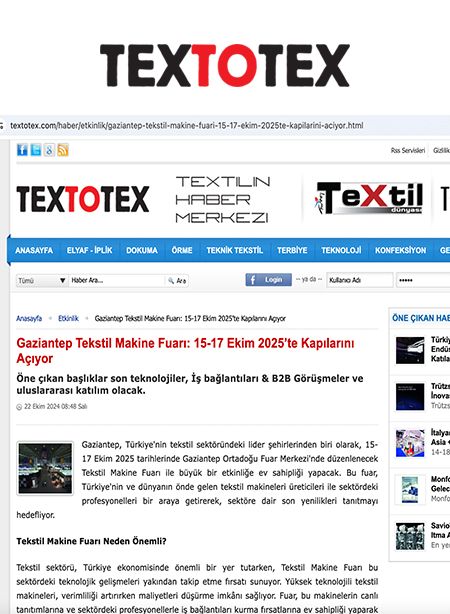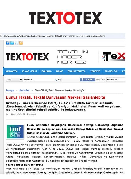 Gaziantep, Türk tekstil üretiminin yüzde 75’ini gerçekleştiren bölgenin merkezinde. GTM 2025 Fuarı, sektörün teknoloji geliştiricileri ve alıcılarını bir araya getirerek önemli işbirliklerine sahne olacak.